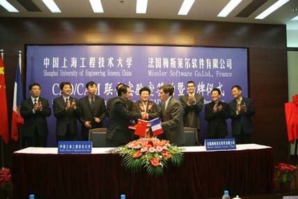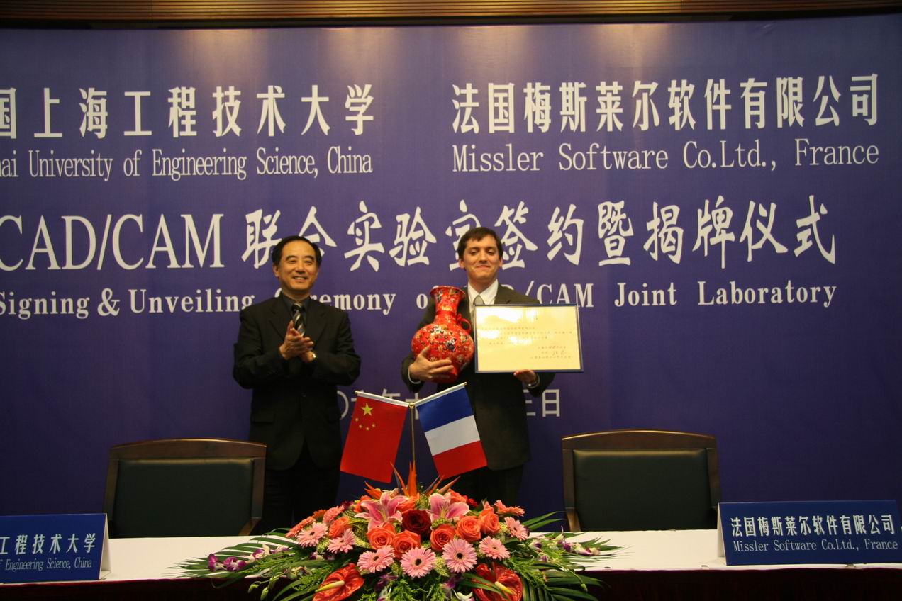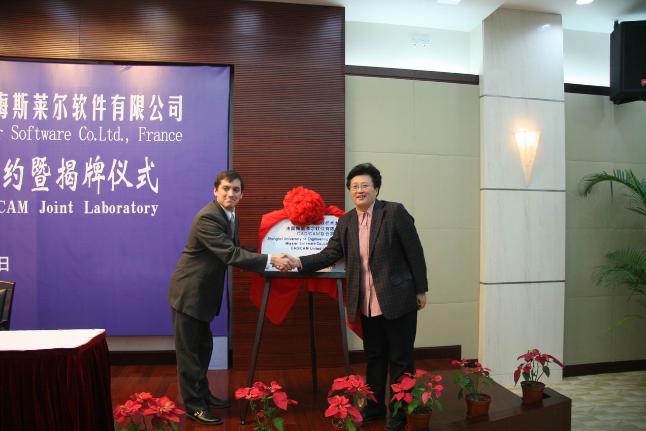 | 11月13日下午13:30,电子电气工程中心实验室迎来了法国梅斯莱尔软件有限公司的技术总监Richard Salmon先生和法中企业协会上海代表处代表Cyrille Terrien先生。 Richard Salmon先生用PPT演示稿为在座的电子电气工程学院教师和学生代表作了一场精彩的专题报告。报告的主题围绕:“现代CAD/CAM技术及TopSolid解决方案”,向师生们展示了先进的CAD/CAM技术以及TopSolid软件的强大功能。在讲解过程中,Salmon先生还用动画演示,将TopSolid的仿真功能与实际生产操作相互对比,让师生们领略了现代CAD/CAM技术的无限魅力。 下午15:00,在图文信息中心第三报告厅隆重举行了我校与法国梅斯莱尔软件有限公司CAD/CAM联合实验室签约暨揭牌仪式。法国梅斯莱尔软件有限公司的技术总监Richard Salmon、法中企业协会上海代表处代表Cyrille Terrien,上海市职能技术培训中心培训一科科长沈科,校长汪泓,副校长郝建平、孙培雷,以及校办、教务处、科研处、后勤及资产管理处负责人等部门领导出席了签约和揭牌仪式。 电子电气工程学院院长刘启中在签约仪式上介绍了签约背景情况。Richard Salmon先生、Cyrille Terrien先生和我校汪泓校长分别发表了热情洋溢的致辞。 签约后,Richard Salmon先生代表梅斯莱尔软件有限公司向学校捐赠了40套价值240万欧元CAD/CAM软件系统。我校副校长郝建平代表学校向远道而来的法国朋友赠送了礼品。上海工程技术大学和法国梅斯莱尔软件有限公司双方都表示,此次CAD/CAM联合实验室的落成,是中法两国致力于高等教育事业的又一项重要措施,相信通过企业与学校的共同努力,将为两国的先进制造业培养出更多高素质的CAD/CAM应用型人才。