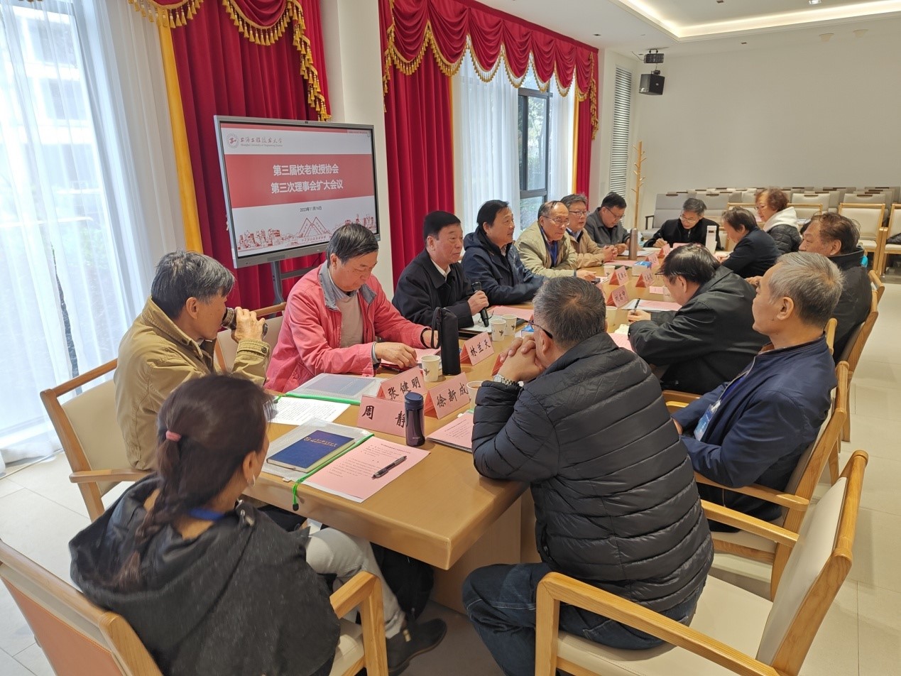 11月16日上午,校老教授协会在湖州“太湖椿”长三角复合式银铃住区会议室召开了第三届第三次理事会扩大会议。校党委副书记史健勇,校老教协会长夏斯云,副会长陈力华,秘书长林兰天,副秘书长张健明、刘牧众、陈月辉及全体理事和分会负责人,党委离退休工作部部长孙文钧参加会议。老教协副会长陈力华主持会议。