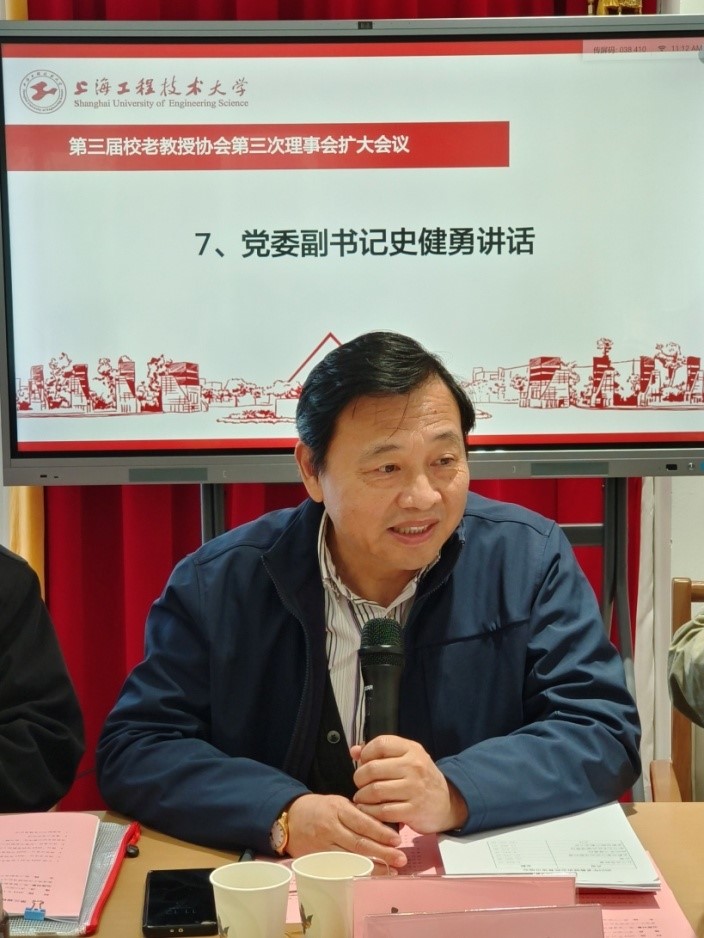 史健勇副书记代表学校党委感谢大家这一年辛勤的工作,感谢协会长期以来关心支持学校工作,特别是对青年教师带教与帮扶困难学生工作予以肯定。他提出,在今后的工作中,协会要继续找准定位,急学校所急,想现实所需,继续做好三点:一是老有所学,做好文化传承、历史传承,宣传正能量,守正创新。二是老有所为,继续发挥自身的政治优势、经验优势、能力优势、资源优势。三是老有所乐,希望大家愉悦的生活、愉悦的工作,量力而行,进一步发光发热。