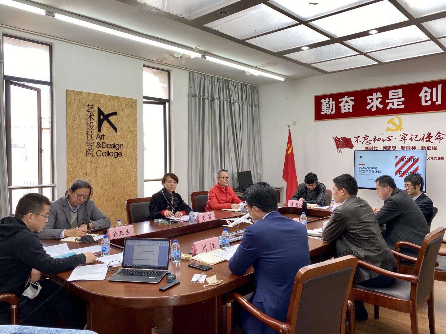 在疫情防控的特殊时期,艺术设计学院党委高度重视毕业生就业工作,结合毕业生实际情况“早着手、早准备”,3月23日下午,艺术设计学院党委在艺术楼A510会议室召开专题会议研讨“十三五”收官工作和就业工作。学院党委书记袁蓉,学院党委副书记、艺术设计学院院长高瞩,学院党委副书记、中韩多媒体设计学院院长吴亚生,学院党委副书记刘江、马建立,艺术设计学院副院长李光安,中韩多媒体设计学院副院长顾艺出席了会议,艺术设计学院副院长任钟鸣,党政办主任程昭和组织员杨爽列席会议,会议由学院党委书记袁蓉主持。