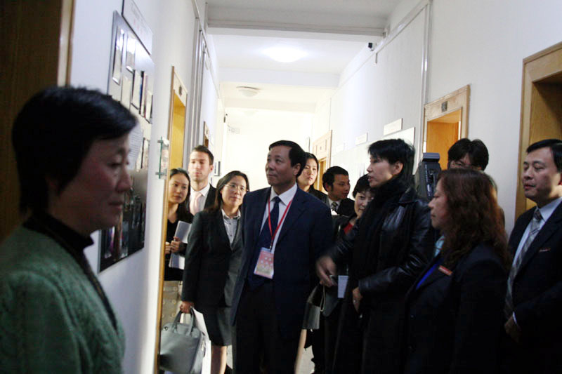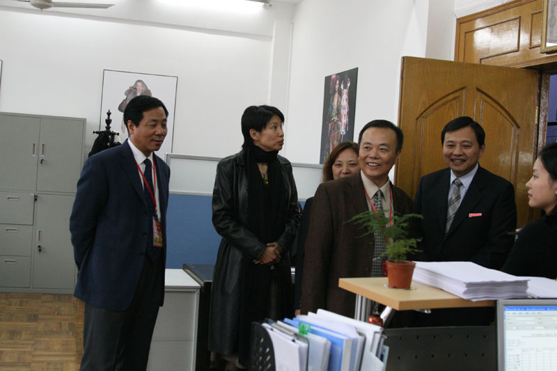 | 11月20日下午13时35分,教育部本科教学工作水平评估专家组组长肖瑞峰教授、组员张国建教授在我校国际交流处处长史健勇等的陪同下,前往我校中法埃菲时装设计师学院检查指导工作。  专家组一行在中法埃菲时装设计师学院副院长周晓鸣等的陪同下参观了学院学生作品展示长廊,由法方院长柴立伟向评估组专家特别介绍了2006年毕业生时装秀的优秀获奖作品,并汇报了以中国特色的文化元素为基础培养学生的教学理念。