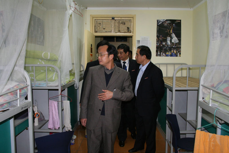 11月20日下午6:45,教育部评估专家鞠平教授在副校长郝建平、程维明的陪同下,考查了学生宿舍三期25号楼,校资产管理及保障处处长吴海权、校后发中心总经理许福宝等同志陪同前往。