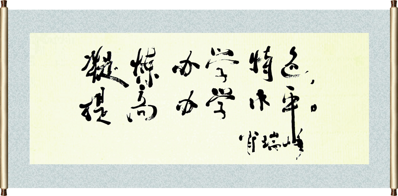 参观结束之际,肖瑞峰教授兴致盎然,欣然挥毫为我校题写了“凝炼办学特色,提高办学水平”的条幅。