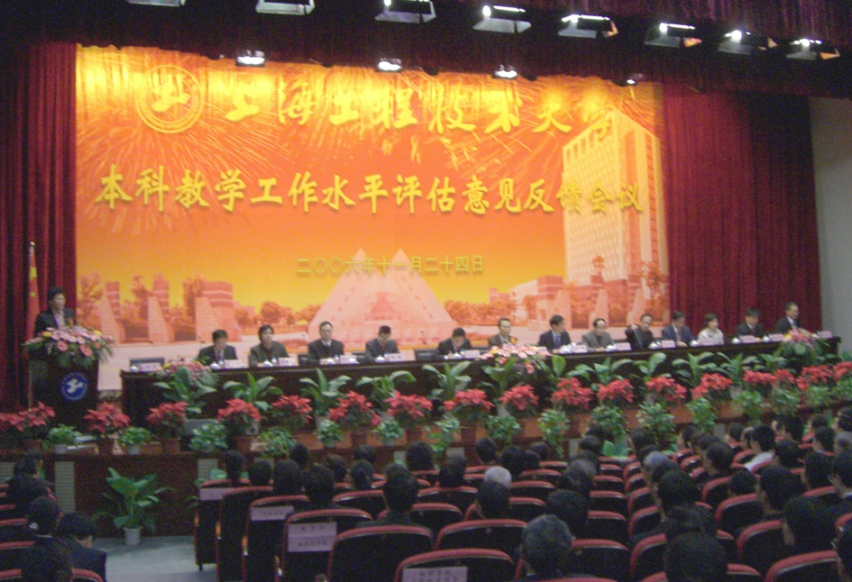 11月24日上午,教育部本科教学工作水平评估专家组在我校图文信息中心志宏堂隆重举行了评估意见反馈会。评估专家组全体成员和上海市教委副主任王奇及我校全体校党政领导、中层干部、学术带头人、青年骨干教师、民主党派代表、离退休职工代表和师生代表出席了会议。评估意见反馈会由评估专家组副组长王元良主持。