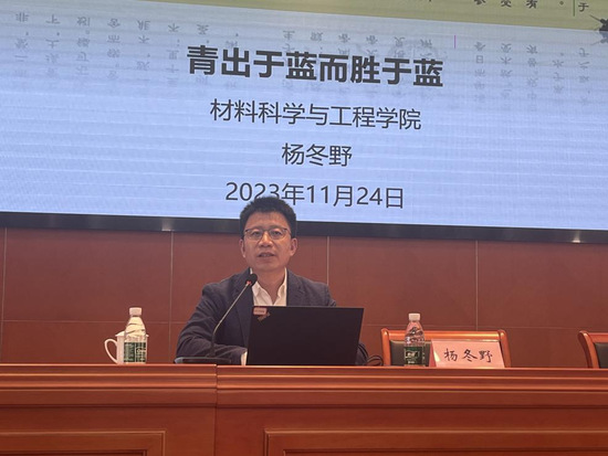 杨冬野副教授作了《青出于蓝而胜于蓝》的报告。他指出因材施教是提升研究生培养质量的突破口,导师要针对学生不同性格特点针对性指导,促使学生爱上学术,导师和学生互相成就,培养出优秀的学生是导师最大的学术成果。