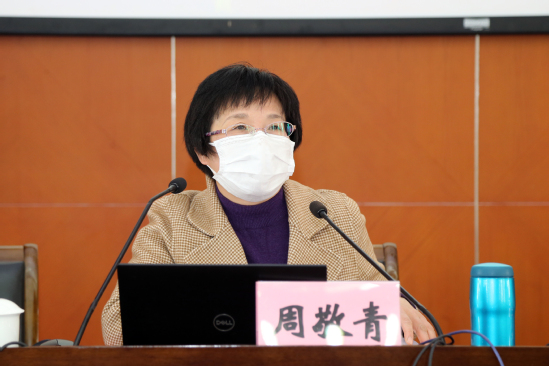 为深入学习领会十九届四中全会精神,推动全校党员、干部进一步提高政治站位,牢固树立“四个意识”,坚定“四个自信”,不折不扣落实全面从严治党责任要求, 4月9日下午,校党委中心组在行政楼B301会议室及图文信息中心第二报告厅举行了专题学习会,中共上海市委党校科研处处长、上海市习近平新时代中国特色社会主义研究中心特约研究员周敬青教授为我们作专题辅导报告及相关政策解读。校党委中心组成员、中层干部、相关部门科级以上干部、各学院党政办公室主任等200余人参加会议,党委副书记、副校长朱晓青主持会议。