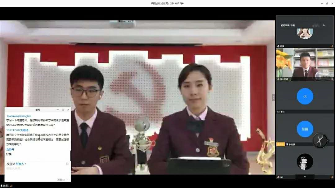 最后是互动问答环节,三位老师就同学们提出的职业追求、专业学习、身份转变等方面的问题进行了细致耐心的解答,同学们在“云端”表达了对导师们的感谢。