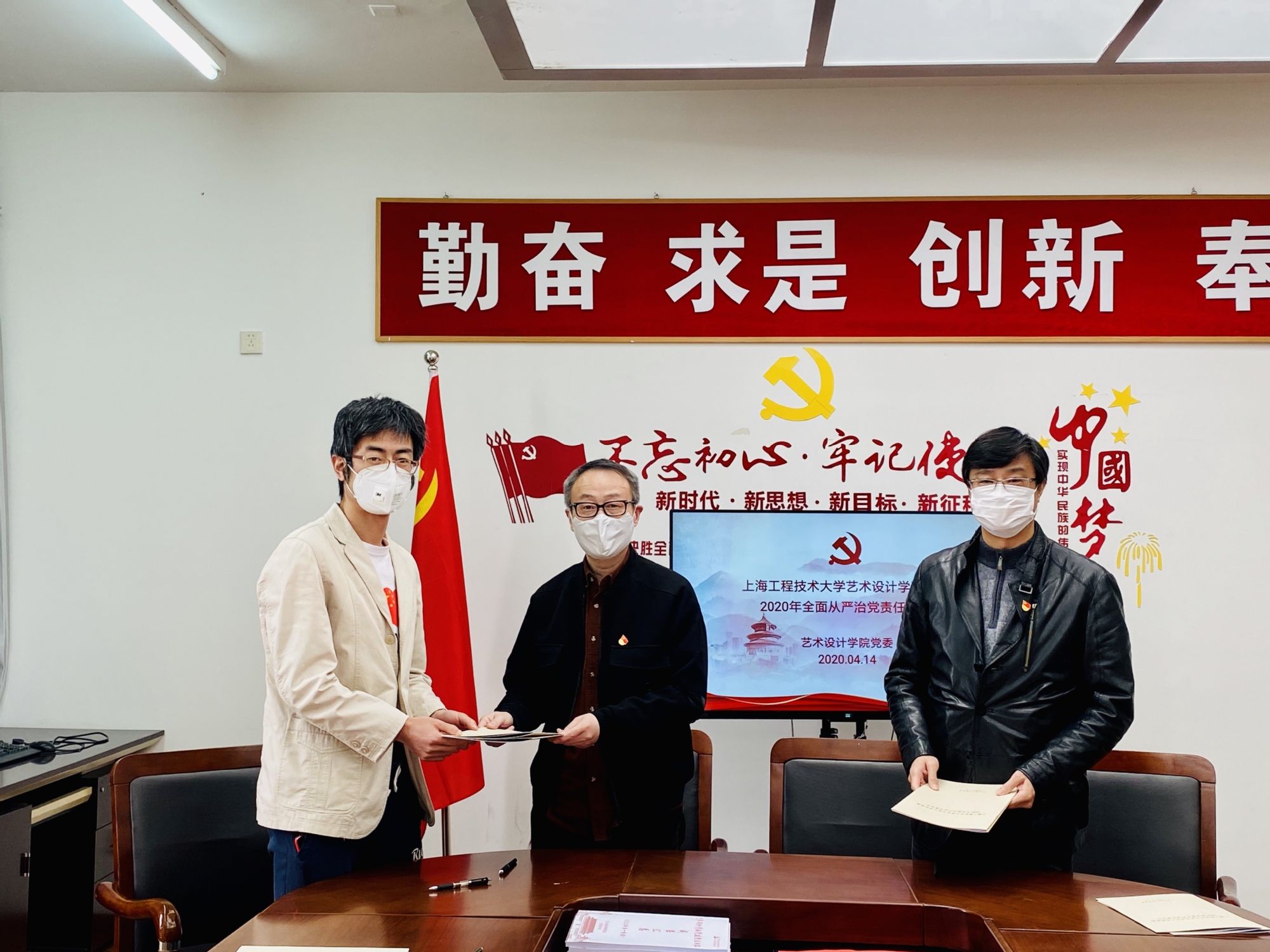 艺术设计学院党委坚持以习近平新时代中国特色社会主义思想为指导,深入学习贯彻党的十九大和十九届二中、三中、四中全会精神,全面落实十九届中央纪委四次全会精神,十一届上海市纪委四次全会精神,贯彻落实市委、市教卫工作党委的各项决策部署,压紧压实管党治党责任,推动学校全面从严治党向基层有效延伸以及党内监督的有关规定,切实做好艺术设计学院党委2020年党风廉政建设和反腐倡廉宣传教育工作,于4月14日下午在艺术楼A51会议室举行了2020年党风廉政三级签约仪式。艺术设计学院班子成员、中韩多体设计学院党班子成员出席了此次会议,会议由院党委书记袁蓉主持。