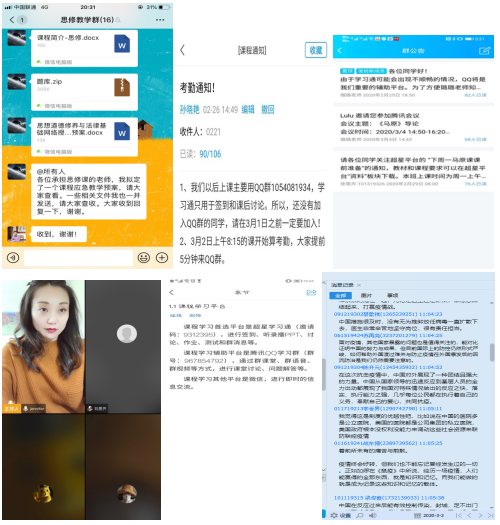 马克思主义学院不仅充分利用网络上好思政课,而且积极谋划教学创新,力争化‘疫情危机’为‘教育契机’,按照校党委的要求,坚持思政课教学因事而化、因时而进、因势而新,讲授好中国抗疫故事、身边感人故事,加强疫情防控知识教育、爱国主义教育、理想信念教育、生命教育、感恩教育等,不断增强大学生的“四个自信”,引导广大青年学子同舟共济打赢疫情防控战争。学院发挥集体备课的力量,提高教师网络信息化授课能力,探讨网络授课过程中可能存在的各类问题,如平台使用熟练程度、在线学生管理、网络平台实施存在的弊端提出备选方案等。开课老师会在学习通发布相关在线教学备选方案通知,遇到问题能够及时转化授课模式。