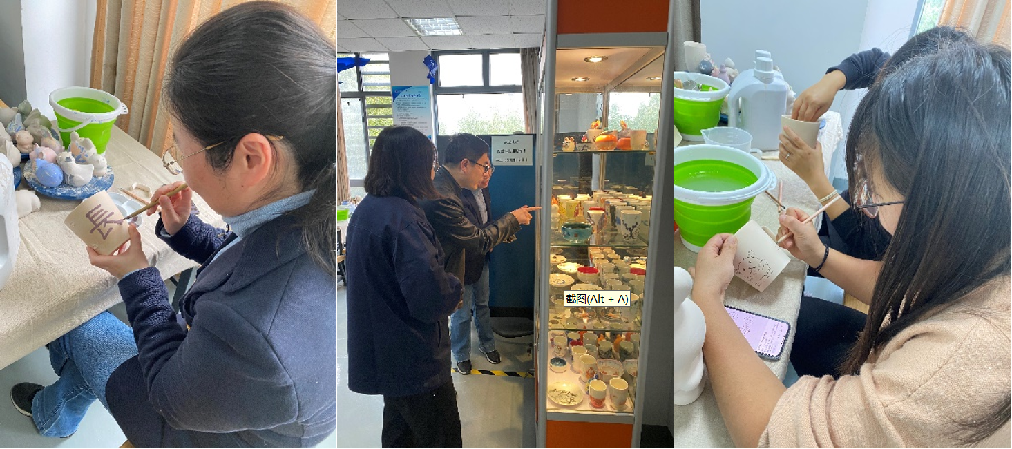 中心全体女教工在丁婷老师的指导下进行陶瓷制作、彩绘与鉴赏,品味陶瓷之美。此次活动不仅让女教师们学会了陶艺彩绘技能,还丰富了女教师们的精神文化生活。大家都表示很开心,尤其是看到杯子是自己精心做成的,非常开心自豪,希望这样的活动能够多多开展。以妇女小家建设为载体,活动丰富了老师们的文化生活,增强了大家的凝聚力,更好地发挥了女性的力量和魅力。