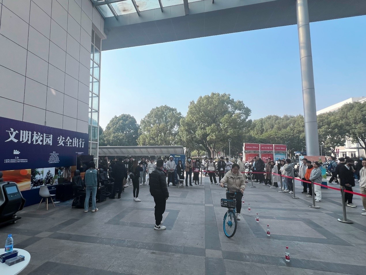 为迎接“12.2全国交通安全日”,11月27日至12月2日,由上海市公安局松江分局交通警察支队、上海市公安局松江分局大学城派出所、松江七校巡回主办的上海工程技术大学站(松江校区)之“文明校园 安全出行”宣传活动正如火如荼进行中,欢迎同学们午餐时段前往大食堂广场参加互动。