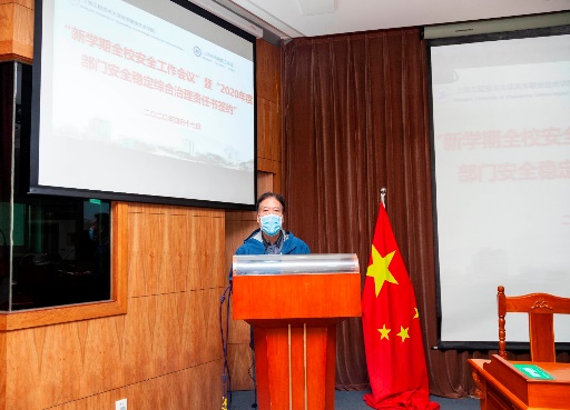 4月17日上午,高职学院、高级技校在综合楼11楼思进会议室召开“新学期安全工作会议”暨“2020年度部门安全稳定综合治理责任书签约”,学院、校党政领导班子、全体中层干部及各科室科员参加会议,会议由副院、校长万军主持。