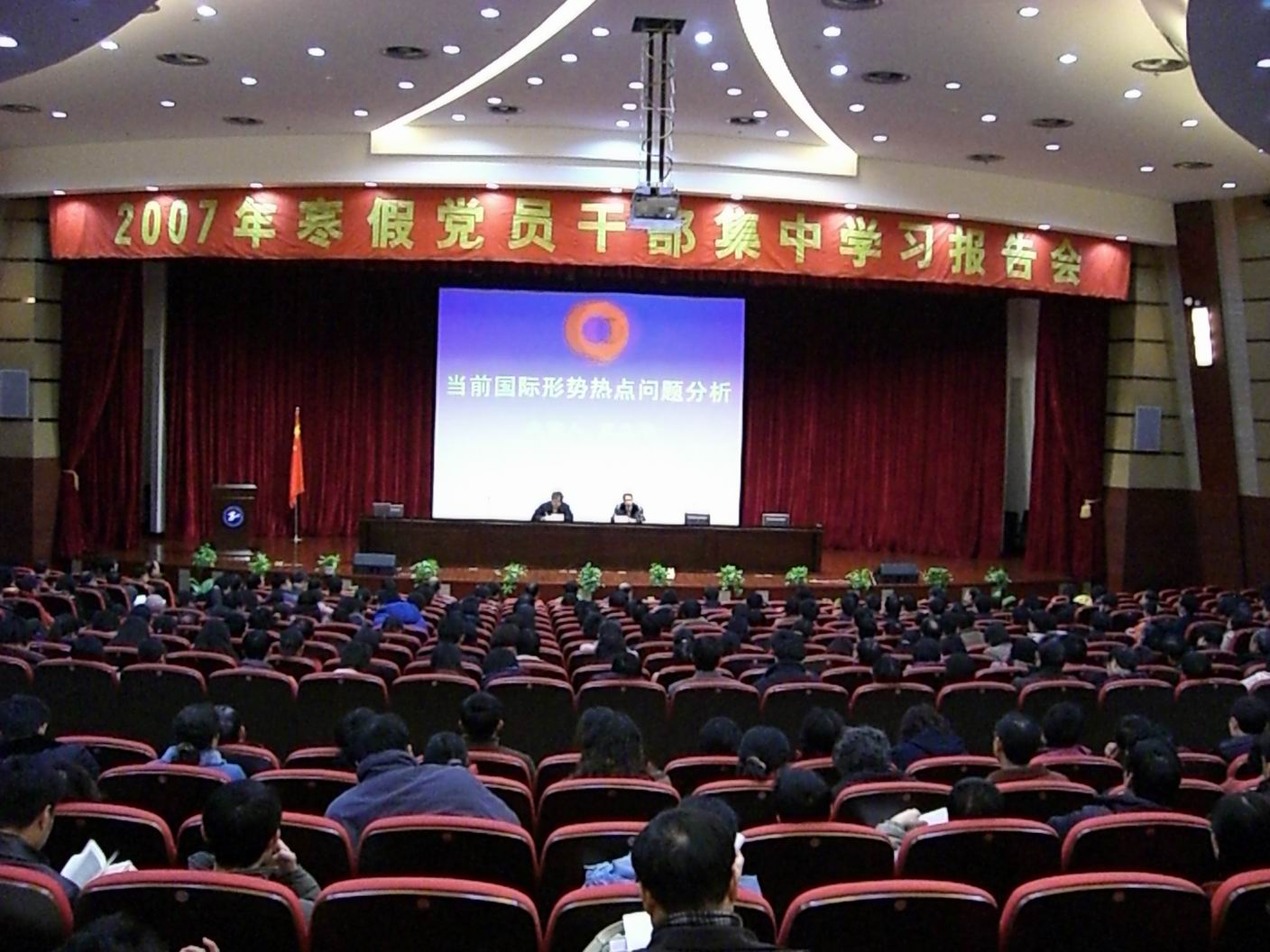 1月31日上午9:00,我校在图文信息中心志宏堂举行2007寒假党员干部集中学习报告会。上海国际问题研究所国际战略研究中心主任、研究员夏立平应邀为我校党员干部做了题为“当前国际形势热点问题分析” 的专题讲座。