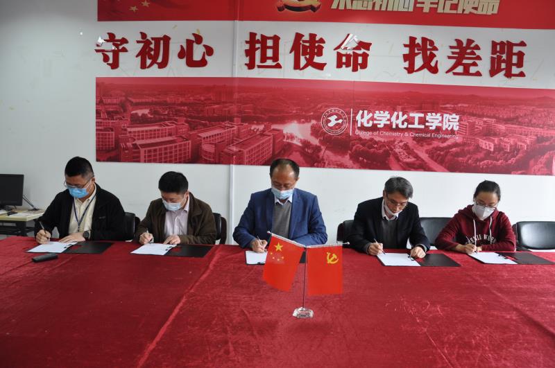 会上,学院党委书记宋勤健与党委副书记、院长饶品华分别与学院副书记、副院长、工会主席、党支部书记、系(室)主任等签署了《化学化工学院2020年全面从严治党责任书》。