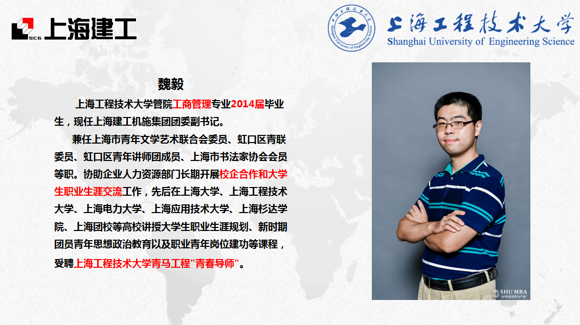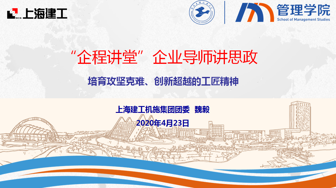 为深化“三圈三全十育人”教育理念,有力促进“育德”和“育能”的有机结合,推动立德树人新发展,积极引导学生践行社会主义核心价值观,打造我校“开门办思政”校外育人新平台,4月23日,管理学院联合上海市机械施工集团有限公司举办了企程讲堂——“培育攻坚克难、创新超越的工匠精神”活动,旨在让学生在疫情导致经济下滑的形势下明确职业规划,提前做好充足准备。机施集团近三年录用我院毕业生40余名,产学合作教育学生50余名,2020年截至目前录用毕业生18名。本次主讲企业导师为机施集团团委副书记魏毅校友,采用线上直播的方式,各专业辅导员及140余名学生代表参与会议,会议由工程管理专业辅导员沙媛媛老师主持。
