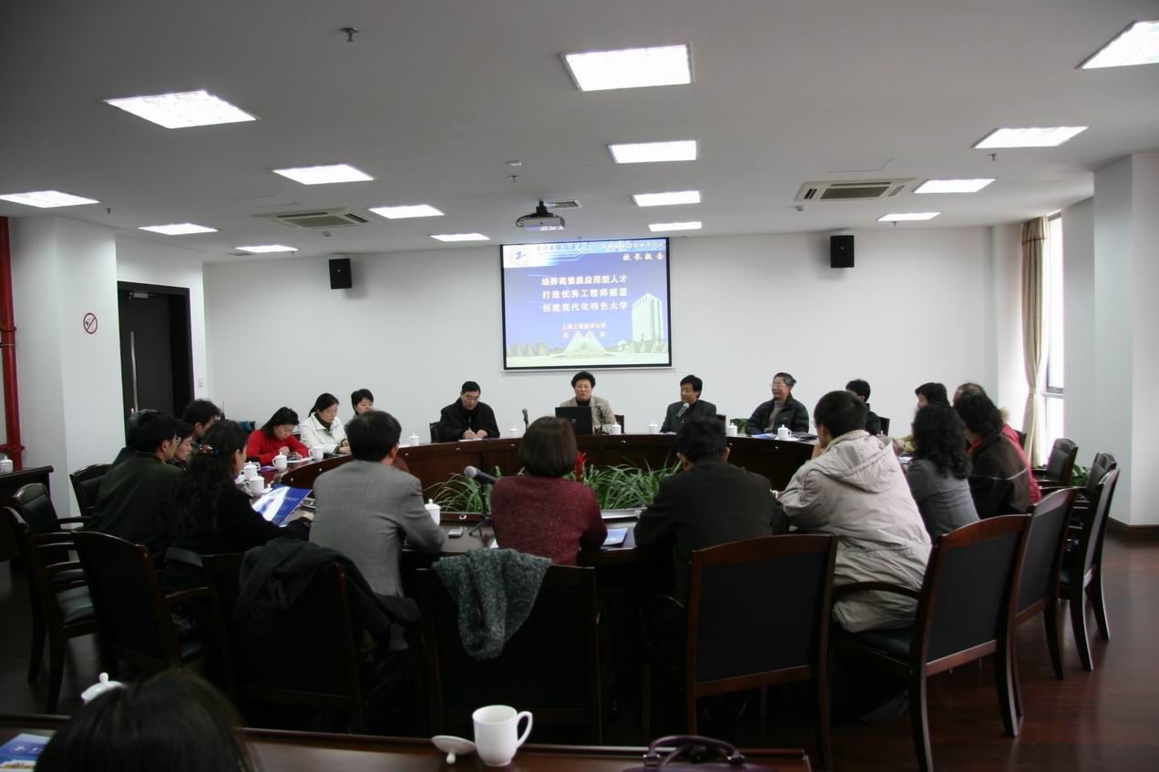 |  3月15日下午,上海市工会管理职业学院一行26人来访我校。 汪泓校长在行政楼306会见了来访客人,并作了题为《培养高素质应用型人才 打造优秀工程师摇篮创建现代化特色大学》的专题报告。校长汪泓在报告中介绍了我校的校园规划建设情况、办学理念、办学特色及学科专业设置体系,强调了本科教学水平评估对我校教学、科研、管理工作方面的推动和促进作用。 校社科部主任张健明、评估办副主任裘建新及管理学院陈心德、吴忠教授分别就两课教学、迎评促建、社会保障学科建设等专项问题与来访者进行了分组讨论。 来访当日,工会管理学院一行在校办史健勇主任、资保处吴海权处长等的陪同下,参观了我校工程实训中心、图书馆、艺术楼等地。来访客人为我校优美的校园环境、一流的教学条件所赞叹,更为我校和谐的校风校貌、昂扬奋进的斗志、并肩携手所振奋。  丁卓菁 |