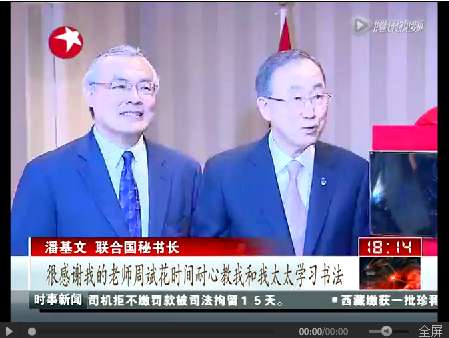 东方卫视报道《潘基文看望中国书法老师》
