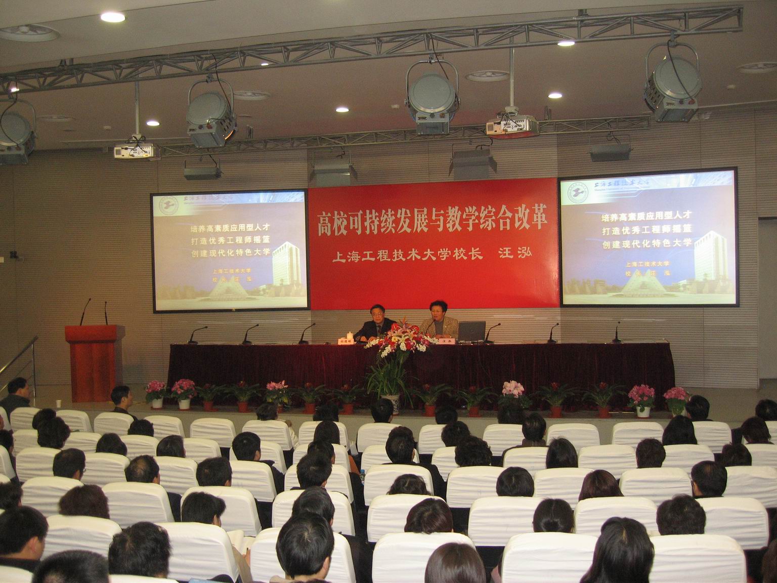 |  3月20日下午,汪泓校长应上海远程教育集团邀请,前往作题为《培养高素质应用型人才打造优秀工程师摇篮 创建现代化特色大学》主题报告。上海远程教育集团党委书记、上海电视大学校长张德明主持了会议。上海电视大学各区教师参加了会议。 汪泓校长在报告中展示了我校“十一五”期间的校风校貌建设情况,介绍了我校的办学理念、办学特色、学科专业设置及专业人才引进培养等内涵建设情况,传达了我校以评估为契机,建设教学质量长效保障机制、切实提高教学管理水平的务实做法,着重涵盖了我校如何围绕地方经济社会需求,对接产业发展趋势的人才培养模式等内容。 汪泓校长内涵深刻、见解新颖、条理清晰的报告激起了全体与会者的强烈共鸣,场内掌声、高潮不断。 上海远程教育集团党委书记、上海电视大学校长张德明在讲话中,感谢汪泓校长的精彩演讲,他说,汪泓校长的报告,不仅为全体与会者带来了高校可持续发展与教学综合改革方面的启发,更为领导者带来了班子建设、学科规划方面的思路,这些观念、理念值得借鉴和学习;汪泓校长忘我工作、兢兢业业的敬业精神令人由衷敬佩和崇敬;汪泓校长带领下的工程技术大学,更是在近几年以只争朝夕、敢为人先、求真务实、开拓创新、追求卓越的精神,开创了高校教育改革中的典范,这些令人有目共睹的成绩,彰显了工程大不可小觑的发展前景。 |