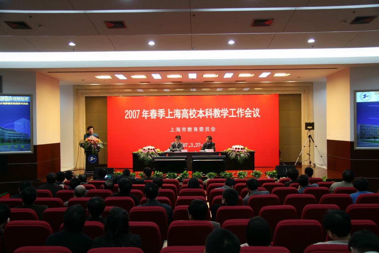 |  3月27日,由我校承办的2007年春季上海本科教学工作会议在松江校区图文信息中心胜利召开。本次会议由市教委高教处处长丁晓东主持,市教育委员会副主任王奇、上海市35个本科院校分管教学工作的副校长及教务处长出席了会议。 本次会议的中心议题是“以提升本科教学质量为中心,坚持‘巩固、深化、提高、发展’的方针,大力加强本科教育内涵建设,以贯彻实施教育‘教学质量工程’为重点,按照‘分类指导、鼓励特色、重在改革’的原则,总结交流上海高校教育教学改革经验,扎实、创造性地开展教学质量工程建设工作”。会上,来自同济大学、上海电力学院、上海第二工业大学、上海交通大学的分管教学副校长,分别从创新人才培养、内涵建设、建立课程中心等方面介绍了本校提高本科教学质量的经验;市教育委员会王奇副主任做了题为“贯彻实施教育质量工程,全面提升上海高等教育质量”的讲话,给与会者以深刻的启发;市高教处丁晓东处长对本次会议进行了总结,并对我校精心组织、缜密安排、热情周到的服务给予高度评价。最后,汪泓校长简短地介绍了我校情况,并带领与会者参观我校实验室。