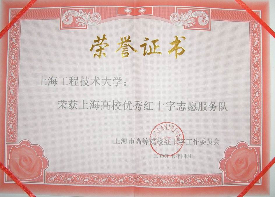 4月21日,在同济大学举办的上海市高校红十字志愿服务表彰大会上,我校被光荣地评为“2006年度上海市高校红十字志愿服务先进集体”。上海市红十字会副会长李明磊、上海市红十字会青少年工作部部长杨钧仪分别在会上就高校红十字志愿者服务工作给予肯定和展望。