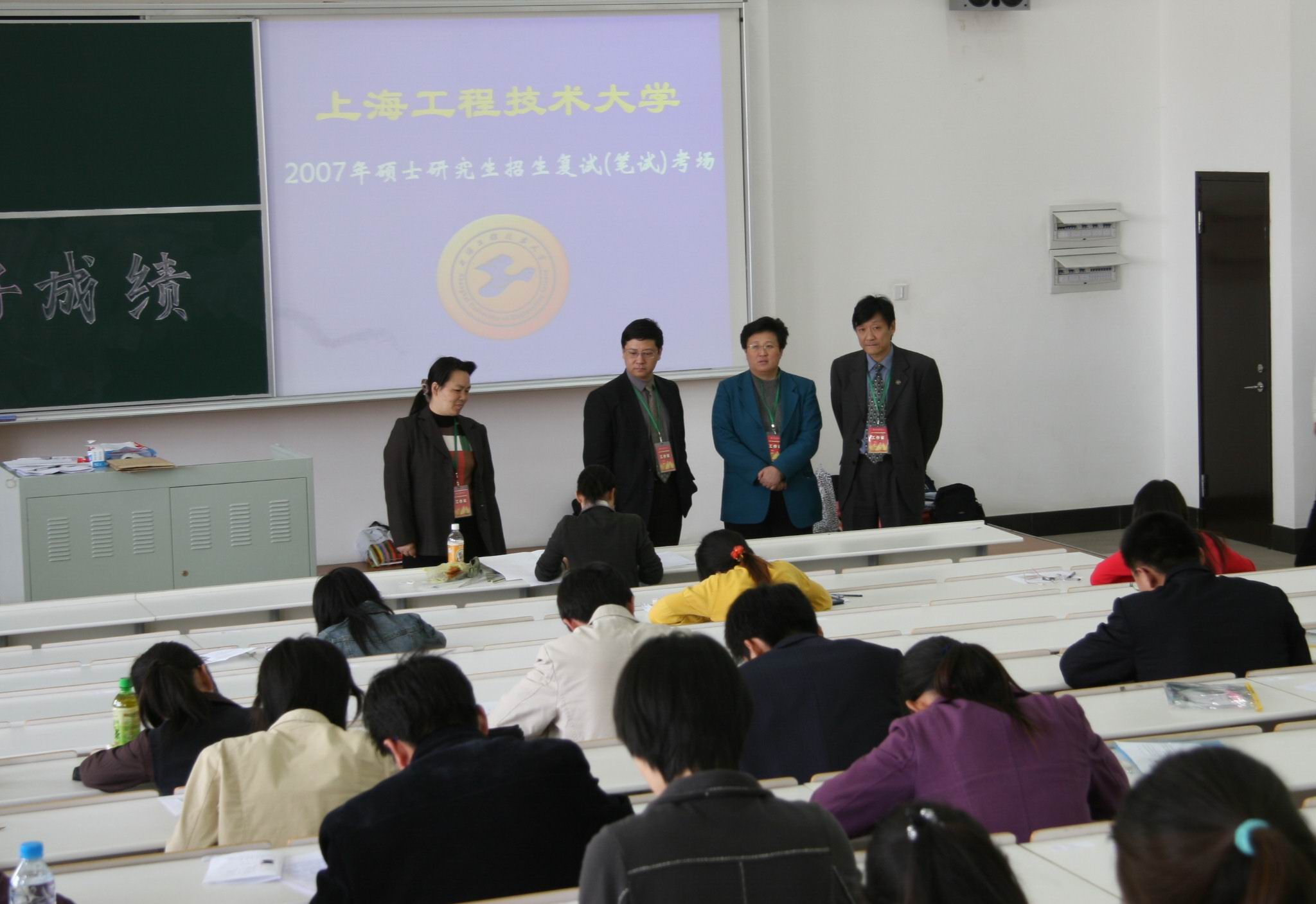 2007年4月22日下午1:00-5:00参加我校研究生复试的56名考生冒着狂风骤雨到我校松江校区行政楼一楼大厅顺利完成了报到手续的办理,程维明副校长到现场指导,研究生处、规划处负责组织,保卫处协助,此次报到分为资格审核、复试笔试科目确认、发放准考证与考生须知、代收体检费等四个流程。 4月23日我校研究生招生复试笔试正式开始,上午8:30-9:00, 参加我校研究生复试的56名考生在我校现代工业训练中心2号楼326进行了英语听力考试,上午9:30-11:30全体考生参加了在教学楼F418举行的社会保障、车辆工程、材料加工工程、服装设计与工程等四个专业的笔试,考场秩序井然,校长汪泓、副校长程维明在百忙之中亲临考场视察,对考场的布置工作表示了肯定并对参加监考和巡考的教师和工作人员进行了慰问。 下午1:00,全体考生前往上海市第一人民医院(松江分院)体检。  4月24日上午8:15-12:00,全体考生参加了在行政楼B201、B203、B204、 B205、B206、B207、B208举行的研究生复试面试,此次面试共分为社会保障A组、社会保障B组、社会保障C组、车辆工程、材料加工工程A组、材料加工工程B组、服装设计与工程等七组,纪委副书记陆晴云老师对考试的全程进行了监督,全部考试顺利完成。 4月24日下午汪泓校长在松江行政楼306召开了研究生招生工作小组和招生工作领导小组会议,会议一致通过拟录取考生名单。 孙 勇 |