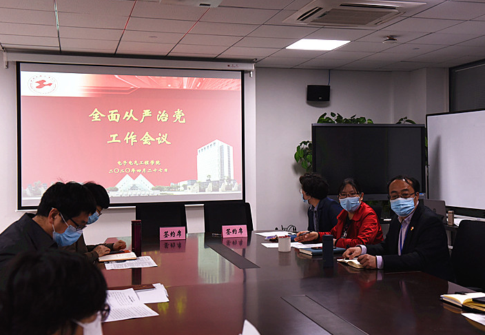 为了学习贯彻十九届中央纪委四次全会、十一届市纪委四次全会精神,认真落实市教卫工作党委和学校党委的工作要求,回顾总结电子电气工程学院2019年全面从严治党工作成效,部署落实2020年电气学院全面从严治党工作安排,推动全面从严治党向基层延伸,担负起管党治党的政治责任,2020年4月27日上午,电气学院召开2020年全面从严治党工作会议暨2020年全面从严治党责任书签约仪式,学院班子、党委委员、支部书记、系(室、中心)主任、工会主席、团委书记参加会议。会议由党委书记段海霞主持。
