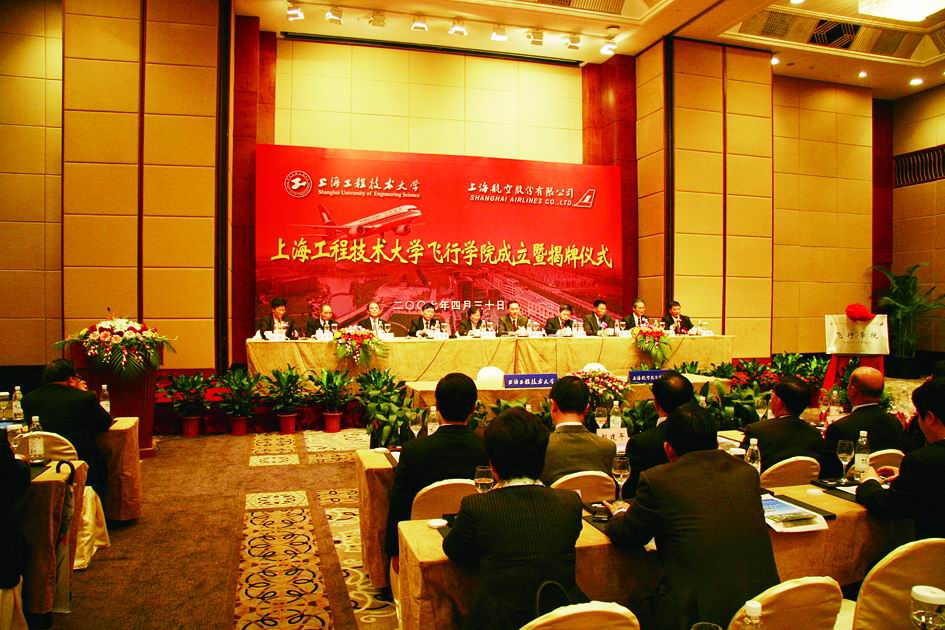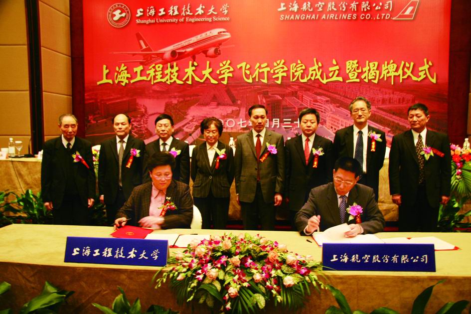 |  4月30日,由我校与上海航空股份有限公司合作联办的上海工程技术大学飞行学院成立暨揭牌仪式在锦江小礼堂隆重举行。教育部副部长吴启迪、国家民航总局飞标司司长蒋怀宇、市国资委主任杨国雄、市教委主任沈晓明等领导应邀出席了飞行学院成立暨揭牌仪式仪式。出席成立仪式的还有上海航空公司名誉董事长贺澎年及我校全体党政领导。成立暨揭牌仪式由上海航空公司副总裁、上海工程技术大学飞行学院院长丁兴国主持。 从2007年秋季开始,上海工程技术大学飞行学院将招收飞行技术本科专业,共计70名学生。按大学本科要求进行理论知识的学习,合格后派送至美国、澳大利亚等国外飞行学院接受飞行训练,毕业后主要就职于上海航空股份有限公司以及其他各大航空公司等民航企业。 飞行学院执行院长魏建在成立仪式上宣读了兄弟单位的贺信,包括中国民航大学、南京航空航天大学在内的80余家单位来信来函,共同祝愿上海工程技术大学飞行学院为上海的民航事业、为建设和谐民航作出新的贡献。 我校校长汪泓在成立仪式上介绍了飞行学院的创立历程。她指出,上海工程技术大学与上海航空股份有限公司在长期产学合作教育特色的培育和发展中,资源共享、优势互补,建立了牢固的产学研战略联盟,双方合作办学的成果在2006年获国家教育部、科技部授予的中国高校与大型企业合作的十大典型案例之一。2006年8月,针对我国民航工业飞行技术人才高度匮乏而引发民航业发展瓶颈的严峻形势,学校和公司双方又一次站在了双边发展的战略高度,对申报飞行技术专业进行了专题的讨论和论证,并经国家教育部、中国民用航空总局和上海市教育委员会的批准,以产学研战略联盟的办学形式,合作成立上海工程技术大学飞行学院,设置飞行技术本科专业。汪泓校长强调指出,上海工程技术大学飞行学院的成立,填补了上海高校专业布局的空白,成为目前上海唯一一所培养民航飞行专门人才的专业学院,肩负着为上海建设成为国际航运中心、为上海民航业发展提供人才支撑的历史重任。她指出,飞行学院成立后,将在学校学科链、专业链对接产业链的特色建设过程中,紧紧瞄准民航业发展的现实需求,在对接中追踪民航业发展的未来脉搏、在对接中拓展教学和科研的空间,实现优质资源共享、推进教育教学发展、提高人才培养质量。 上海航空公司董事长周赤在讲话中指出,上海航空公司与上海工程技术大学有着十五年良好的校企合作经历,正是这种良好的合作经历为双方联办飞行学院奠定了扎实的基础,而飞行学院的成立,又使校企双方合作的领域扩大到了一个新的空间。周赤董事长指出,目前,我国民航业正处于黄金发展期,“十一五”期间,我国民航飞机架数将从目前的800多架增加到1500架,尤其是上海更要建设成为亚太地区国际航空枢纽港。上海航空公司也将依托上海国际航空枢纽港的区位优势,以加入“星空联盟”为契机,努力实现“国际化、枢纽化、集团化”的战略目标。周赤董事长指出,民航业的快速发展需要大批高素质的飞行人才,上海地区对飞行人才的需求在未来的五年将会达到2000多名。而上海工程技术大学飞行学院的建立恰逢这一前所未有的历史机遇,它填补了上海高校专业布局的空白,将为满足飞行人才培训的紧迫需求,为促进上海民航事业的发展,为建成上海国际航空枢纽港,实现“四个中心”的城市发展战略作出重要的贡献。 在成立仪式上,上海航空公司董事长周赤和上海工程技术大学校长汪泓代表校企双方在合作协议上进行了签约。教育部副部长吴启迪和国家民航总局飞标司司长蒋怀宇为上海工程技术大学飞行学院的成立进行了揭牌。 市教委主任沈晓明、市国资委主任杨国雄、国家民航总局飞标司司长蒋怀宇在讲话中对上海工程技术大学飞行学院的成立表示衷心的祝贺,祝上海工程技术大学飞行学院在办学过程中充分发挥产学研战略联盟的优势,立志成为上海高教领域服务民航业的主体力量,努力 探索培养民航业优秀高级应用型人才的有效途径,构建适应新世纪上海民航业发展要求的教育体系,推动人才培养规格与国际民航接轨,为上海民航业建设和发展、为实现民航强国的总体目标作出新的贡献! 教育部吴启迪在飞行学院成立仪式上作了重要讲话,她代表教育部对上海工程技术大学飞行学院的成立表示热烈地祝贺!吴启迪副部长指出,上海工程技术大学和上海航空股份有限公司合作联办的飞行学院,是教育部倡导的高等学校主动服务地方经济发展的又一次成功实践。上海工程技术大学与上海航空股份有限公司有着长期成功合作的丰富经验和丰硕成果,双方产学合作特色育人模式被教育部、科技部授予中国高校与大型企业合作的十大典型案例之一。今天双方合作成立飞行学院,对进一步推进地方高等学校以产学研联盟推进高等教育发展,创建现代化特色大学具有重要的实践意义和深远的历史意义。 吴启迪副部长指出,教育部在对上海工程技术大学进行本科教学水平评估时,充分肯定了上海工程技术大学始终坚持依托上海现代产业,坚持产学研紧密结合创建现代化特色大学中形成的特色办学模式和特色育人模式。近年来,上海工程技术大学在积极探索高等教育发展规律,打造优秀工程师摇篮,培养具有国际视野、创新意识和