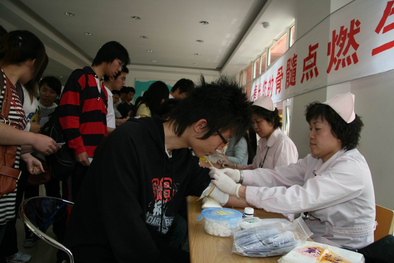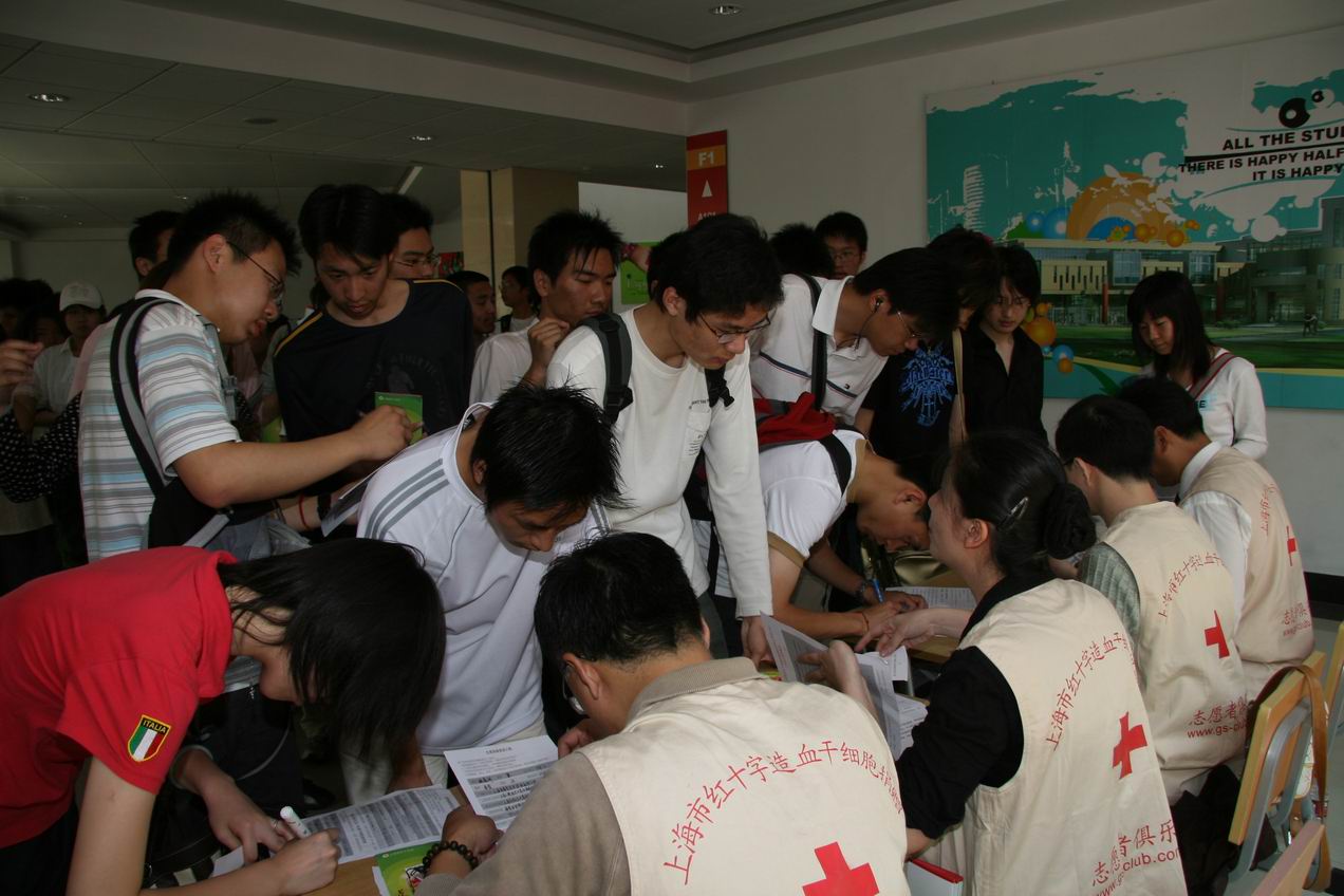 纪念5月8日世界红十字会日,为了进一步向成功捐献造血干细胞的师长刁伟枫同学学习,将爱的火炬传递下去,我校红十字会于5月11日中午在学校师生活动中心底楼组织本校骨髓志愿捐献者参加血液采样活动。活动由中华上海骨髓库对志愿者进行6毫升血样采集化验,将化验后的HLA分型储存在电脑资料库(骨髓信息库)中,以便为患者寻找配对。
