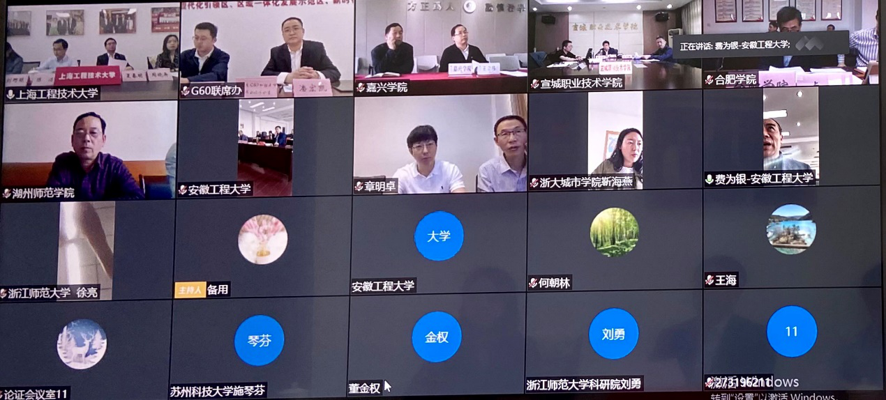 在长三角G60科创走廊联席会议办公室的支持下,由上海工程技术大学牵头,长三角G60科创走廊九城市相关高校共同参与,拟成立“长三角G60科创走廊高水平应用型高校协同创新联盟”。4月29日下午,我校主持召开了长三角G60科创走廊高水平应用型高校协同创新联盟筹备会线上会议。长三角G60科创走廊联席会议办公室科创组组长潘宏凯、上海工程技术大学副校长夏春明、浙江师范大学副校长钟依均、苏州科技大学副校长施琴芬、安徽工程大学副校长费为银、合肥学院副校长卢平、嘉兴学院副校长胡俊云、湖州师范学院副校长叶金云、宣城职业技术学院副院长庞波、各高校相关负责人出席会议。会议由我校副校长夏春明主持。