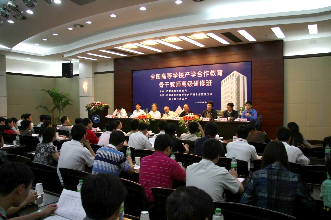 | 5月29日上午9:30,“高等学校产学研合作教育骨干教师高级研究班”开幕式在我校图文信息中心第三报告厅隆重举行。 教育部高等教育司理工处、中国产学合作教育协会、上海市教育委员会高教处、上海产学合作教育协会的领导,以及中国高等教育泰斗潘懋元教授等高等教育界的专家学者和上海工程技术大学全体校领导一同出席开幕式。参加高级研究班的来自全国本科、高职、高专院校,从事教学工作、高等教育研究与产学合作教育的70余名高级骨干教师以及管理人员到会开幕式。中国高等教育学会产学研合作教育分会副会长兼秘书长吴岩教授主持开幕式。 开幕式上,上海工程技术大学校长汪泓致欢迎词。教育部高等教育司理工处江河同志、中国产学合作教育协会会长朱传礼教授、上海产学研合作教育协会秘书长、上海市教育委员会高教处丁晓东处长、上海产学研合作教育协会副会长、上海师范大学校长李进教授先后作了讲话,对“高等学校产学研合作教育骨干教师高级研究班”在上海工程技术大学的胜利举办表示由衷的高兴,并希望此次研修班搭建起产学合作教育经验交流的平台,在产学合作教育的高度、深度、广度上进一步发展,在制度上创新,在模式上探索,为中国现代高等教育的前进和发展提供良好借鉴和典范。 开幕式结束后,出席开幕式的全体人员在图文信息中心前合影留念。