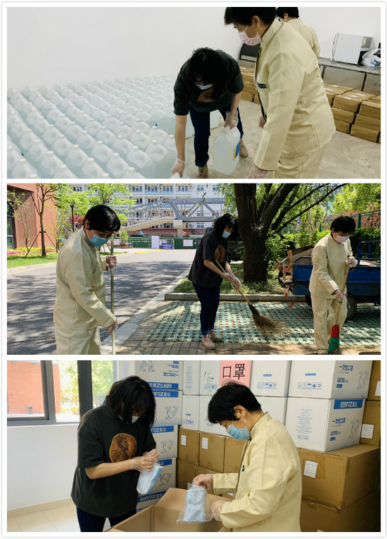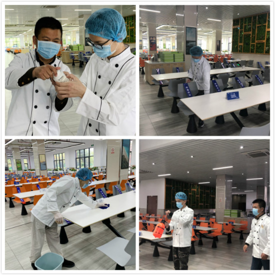 从清晨6时起,他们或在食堂清洁消毒,或在草坪修剪养护,还穿着防护服、带着护目镜,帮门卫大叔一起测体温……在校园十二时辰里,投入这场劳动战“疫”中。