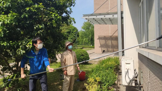 曾与他们每日相伴的大楼,唯有窗明几净,才能整洁安静,“阳光晒在窗户上、草地上,成了大学里最温暖的时光。”由于天热,在刚刚短暂劳动后,姜通敏便气喘吁吁、汗流浃背了,“不论是寒冬还是酷暑,辛劳就是这工作的日常。”他向计划节后返校的同窗呼吁,从自身做起,保证自己教室的基本卫生,一同维持校园明亮干净。