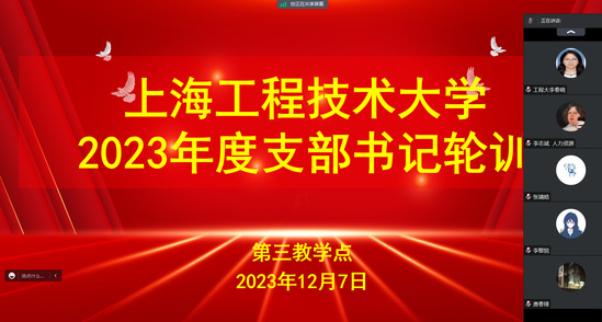 为认真贯彻落实党的二十大精神,12月7日晚,党校第三教学点通过线上形式开展支部书记轮训专题培训。特邀国家级人才、上海市劳动模范王国中教授讲授“创新驱动发展,奋斗成就梦想——数字技术赋能高校教育教学改革创新实践”劳模党课。新疆科技学院教职工,上海工程技术大学电子电气工程学院党委书记范君晖、党校教学点各党支部书记、副书记、支委委员参加培训,会议由上海工程技术大学援建新疆科技学院教务处副处长唐春锋主持。