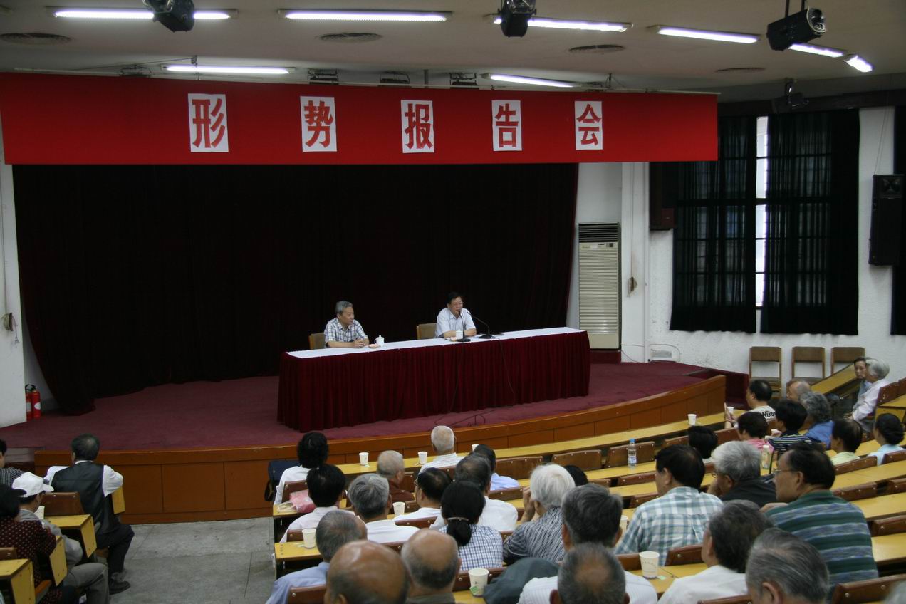 |  2007年6月18日上午,仙霞路校区退休党支部组织开展形势报告会。报告会由仙霞路校区退休党支部书记孙境明主持,校党委副书记、工会主席、退管会主任田信灿同志为仙霞路校区退休党支部党员作报告。100余名退休教职工党员参加了报告会。 田信灿副书记向老同志们详细地传达了上海市第九次党代会精神、上海经济发展形势、学校的主要工作和2007年退管会工作情况。老同志们听了报告后倍受鼓舞,为上海在党的领导下所取得的成就以及学校所取得的成绩,特别是学校获得教育部教学评估“优秀”感到欢欣鼓舞,对第九次党代会提出的奋斗目标以及学校面临的“十大”任务充满信心,对学校领导重视、关心、支持退休教职工工作,采取有效措施,加强对退管工作的领导,加大对癌症初发的退休教工的关心力度,调整退休教工“一日游”活动及在新村路校区建立退休教工活动室等实事感到高兴。老同志们高兴地说,这些实事体现了学校领导和退管会认真贯彻落实市第九次党代会精神,体现了学校对退休教工的关心,我们老同志也要继续努力,为上海的发展、学校的建设、为构建美好的和谐校园尽自己的绵薄之力。 张海成 |