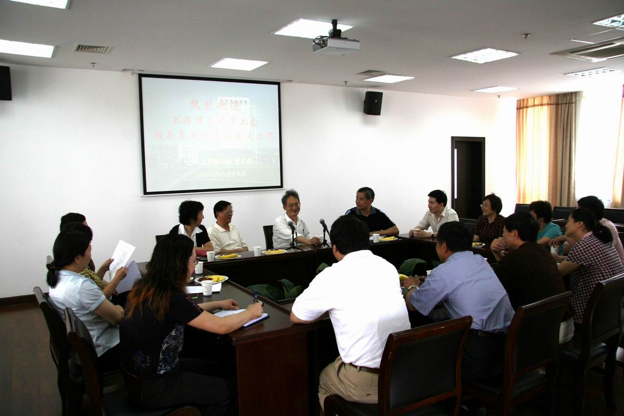 | 为加强工会工作的学习和交流,提升工会工作的内涵,6月19日下午13:00,上海理工大学工会一行9人在该校常务副主席江孝渔同志的率领下赴我校工会进行工作交流。我校党委书记曹伟武,党委副书记、工会主席田信灿等给予了热情接待。 校工会常务副主席沈海庆同志带领客人们赴19楼观光层俯瞰了大学城校园美景。在简短的欢迎仪式之后,双方落座行政楼B402会议室开展工作交流。我校工会与上理大工会在教职工参与学校民主管理、推进校务公开、二级民主管理、师德师风建设、工会财务经审工作等展开了热烈讨论。双方还就新形势下如何进一步深化内涵建设、开展工会理论研究,提高为教职工服务的能力和水平进行了积极的探讨。 韩玉德 |