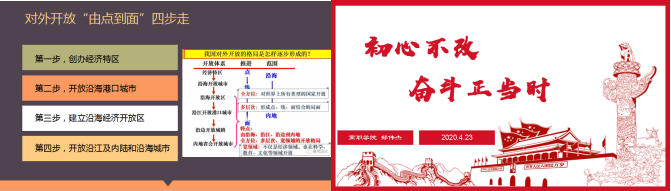 开展“学习党史、新中国史、改革开放史、社会主义发展史”主题教育活动。为进一步提高学生的政治站位,增强政治认同,特开展多种形式的党史、国史、改革开放史和社会主义发展史学习活动。