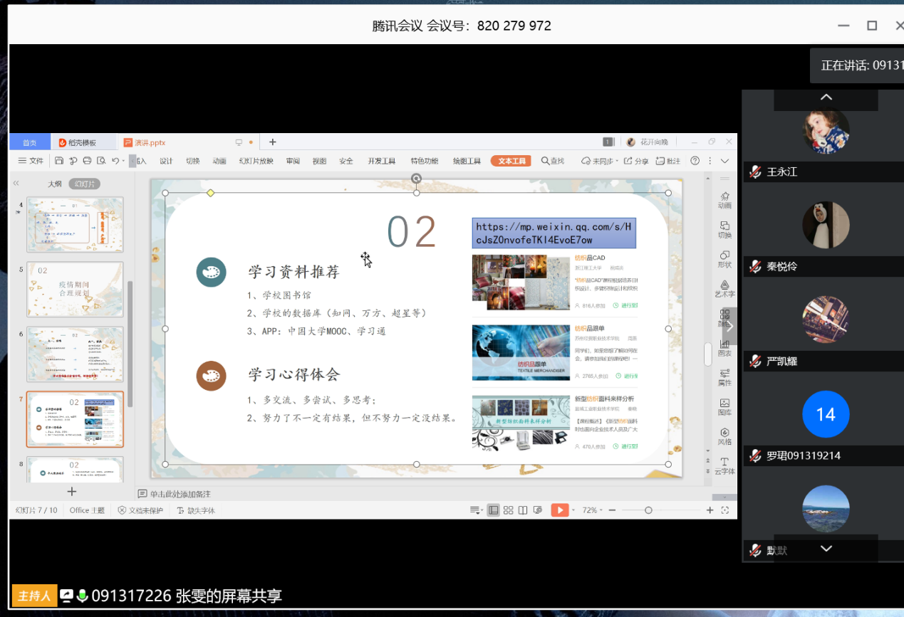 本次活动目的在于分享学习经验,给在校的工科专业,特别是纺织工程专业学生们学业上的建议和指导,帮助他们在疫情期间把握学习机会,更上一层楼。
