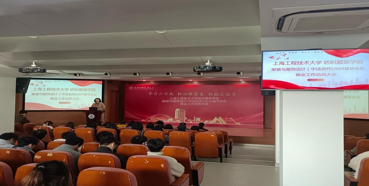 12月7日上午,纺织服装学院在长宁校区召开服装与服饰设计(中法合作)专业2024届毕业生就业动员会。学院党委副书记谢志霞,副系主任胡强,辅导员王梦雪,学院成功创业的优秀校友、上海英沐文化传媒有限公司董事长臧伟,中国民生银行上海分行虹桥支行副行长于然,18级校友范瑞卿,上海纳薇服装设计有限公司人事总监高苗苗出席会议。会议由辅导员王梦雪主持。