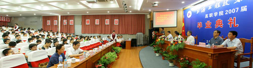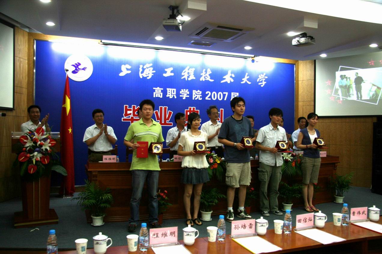 |  高职学院2007届毕业典礼7月13日下午在逸仙路校区“思进厅”隆重举行,校党委书记曹伟武,校长汪泓,校党委副书记田信灿,副校长郝建平、孙培雷、陈力华、程维明出席了典礼。高职学院党总支书记柳如荣担任典礼司仪,张方良院长主持典礼仪式。 仪式中,孙培雷副校长首先宣读荣获“上海市高校优秀毕业生”称号的高职学院毕业生名单,在全场热烈的掌声和欢快的乐曲声中,获奖学生上台领奖。接着,由陈力华副校长宣读2007年高职学院考取本科的毕业生名单,31位同学依次上台领取了由学校领导颁发的纪念品。 上海市高校优秀毕业生、我院04级数控应用技术专业赵子卿同学代表全体毕业生深情发言,向曾经谆谆教诲、倾注心血的所有的学校领导、教师,向所有关心帮助学生茁壮成长的教职工致以崇高的敬意。他衷心地祝愿母校再创佳绩、永铸辉煌。 毕业生家长代表、上海市长宁公安分局郑德祥同志在典礼上发言,表达全体家长高兴、激动的心情和对学校秉承正确的办学方针,坚持特色教育,承载光荣、延续辉煌的期望。 最后在欢快的乐曲声中,汪泓校长向229名毕业生一一颁发毕业证书,喜悦、激动、感恩、回报的心情荡漾在每一位毕业学生的胸中。 汪泓校长在典礼上代表学校致辞,她向每一位即将离开美丽的校园,走上新的生活道路的毕业生表示深切的祝福和由衷的祝贺!她认真回顾了学校创建高职学院及学院不断稳步发展的进程,高度评价在全院教职员工共同努力下取得的各项成果。她指出,教育首先是一个精神成长过程,然后才成为科学获知的一部份。她无限深情地对全体毕业生说,工程大的办学精神因为你们的到来而得提升和发扬,离别之际,你们前行的道路让我们牵挂,你们承载着师友、社会、家长太多的期望。汪校长衷心祝愿全体毕业生一帆风顺、前程似锦。 毕业典礼在全场高唱《毕业歌》歌声中圆满结束。 出席高职学院2007届毕业典礼的还有校学生处处长王明复、校教务处副处长刘宇虹及高职学院党政领导等。 沈德宝 |