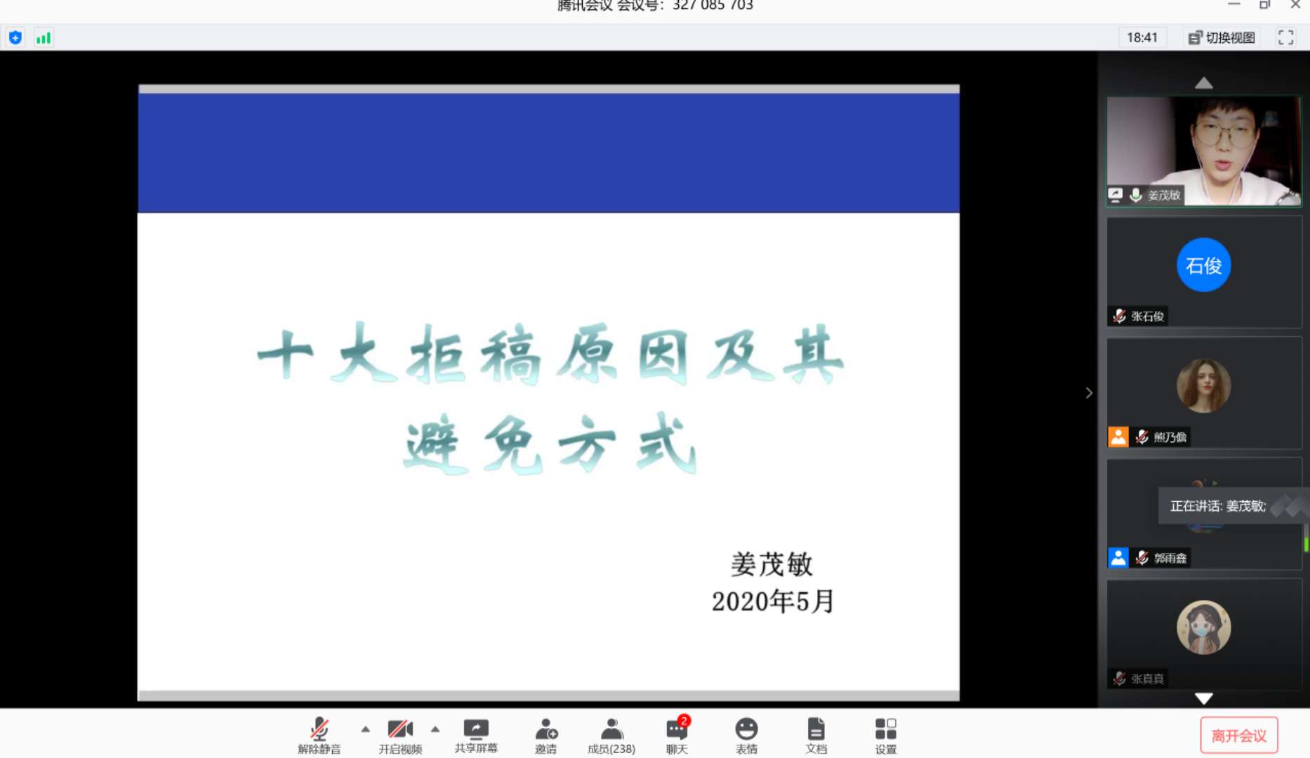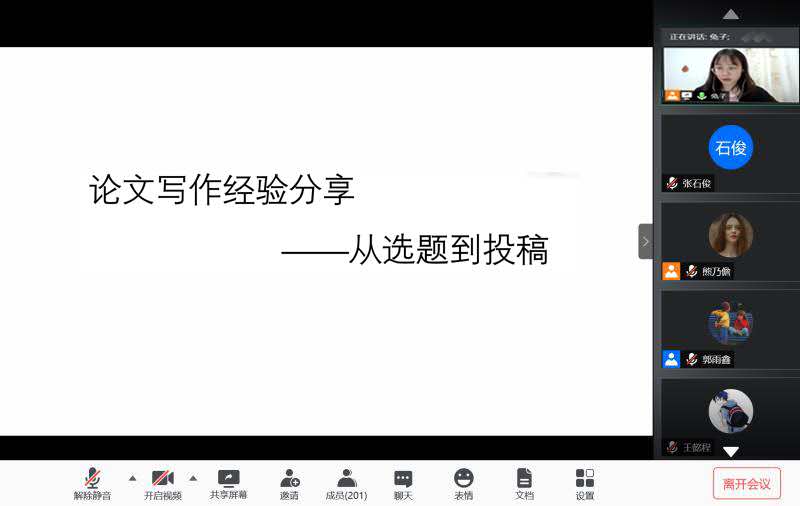 最后,线上现场同学就自己在撰写以及待发表论文中所遇到的困惑积极提问,尧淦和姜茂敏同学根据自己的经验做了详细的解答。
