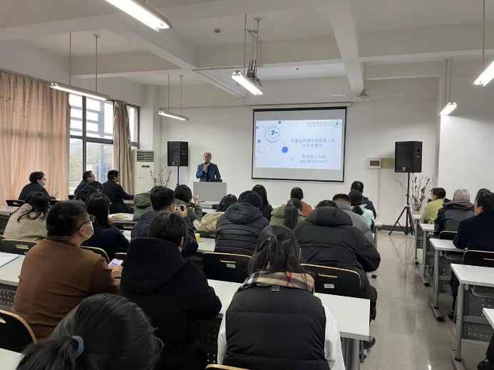 12月15日中午,化学化工学院在4418会议室召开实验室环境专项治理工作动员布置会,学院党委书记宋勤健、各实验室负责人、研究生导师参加会议,会议由副院长王润锴主持。