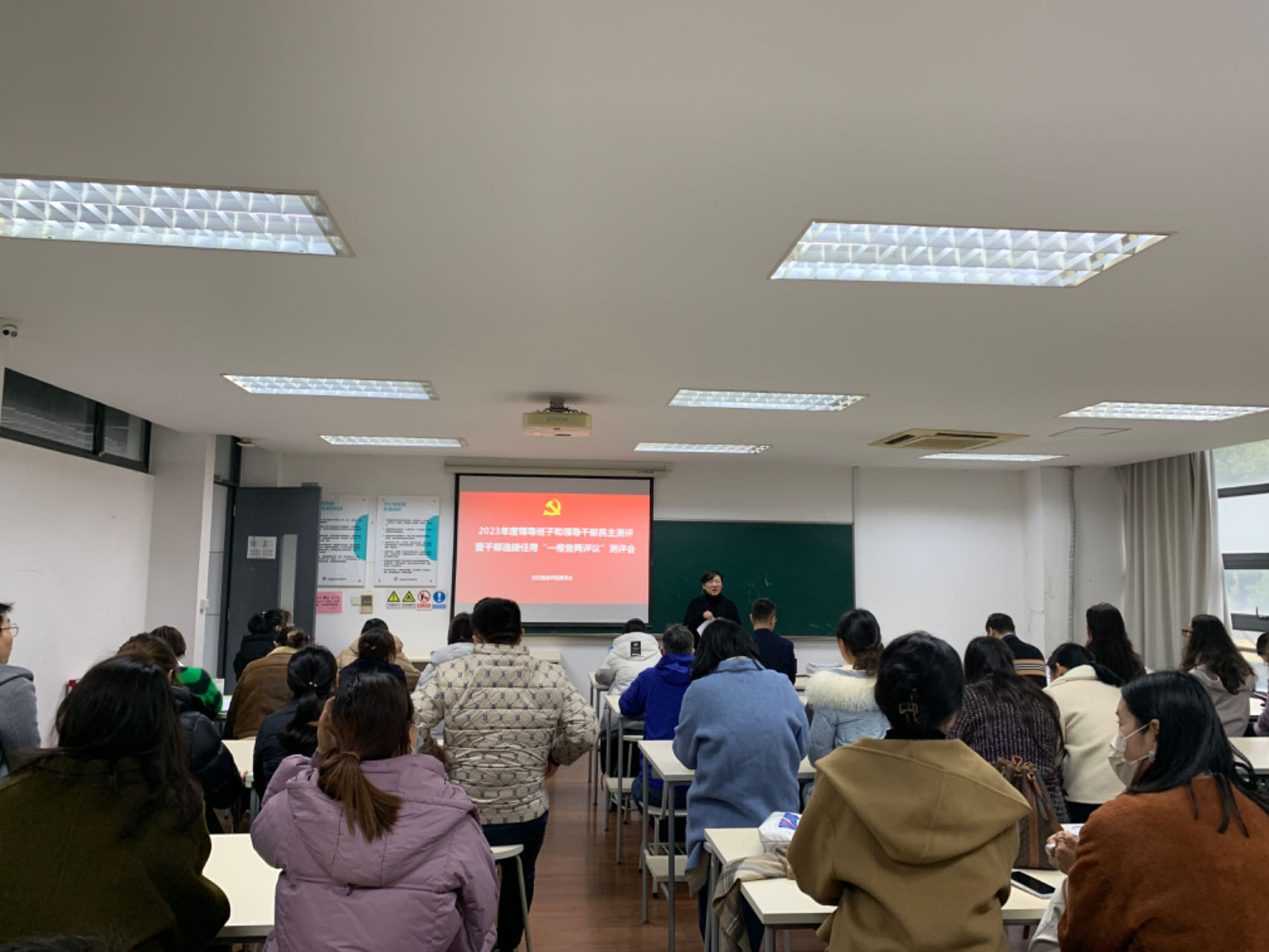 朱君璇就本次领导班子和领导干部民主评议内容及办法等作了详细介绍,并代表学院党委作了2023年工作报告,提出了下一步工作方向和思路,同时作了2023年度科(职)级干部选拔任用工作专题报告。领导班子成员依次进行了个人述职,围绕政治表现、履行岗位职责和廉洁自律等情况,以及落实“十四五”规划目标的阶段性成果方面进行梳理总结,根据岗位要求和自身表现查摆不足,明确努力方向。