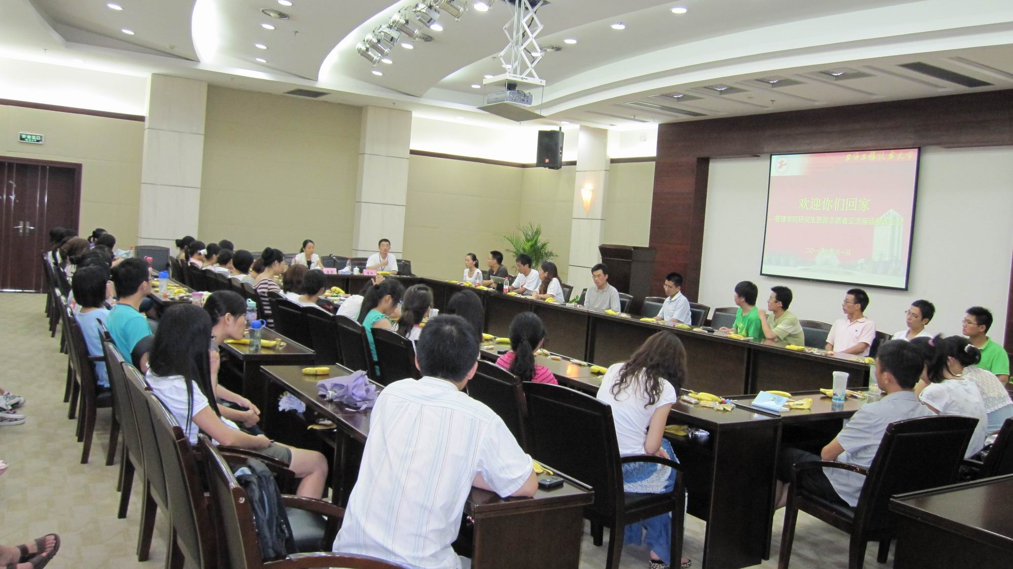 | 7月1日下午15:00,管理学院在图文信息中心第三报告厅举行了2008级研究生西部志愿者交流暨表彰会。管理学院党总支副书记虞容老师,校团委副书记李扬老师,西部志愿者苏世海、毕可影等管理学院社会保障专业2008级、2009级全体研究生参加了会议。  会上,李扬老师向同学们介绍了西部志愿服务的意义,强调了西部志愿服务的奉献精神和社会责任性,同时也对西部志愿者表示欢迎。接着,两位志愿者以视频的形式展示了其一年志愿服务的内容及心路历程,让与会老师和同学们都深受感动。他们在分别做好龙陵县委组织部和龙陵县残联本职工作的同时,还和其他志愿者组成了龙陵服务队,以弱势群体为主要服务对象,开展了下乡服务、慰问老人、世博巡讲及捐赠图书、艾滋病预防宣传等一系列具有实际意义的活动,给龙陵地区的弱势群体带去了温暖、普及了相应的科学知识。另外,志愿者还对在龙陵抗旱救灾中积极捐款的2008、2009级社会保障专业班级,2008、2009级服装加工工程和设计专业班级及2008级车辆工程专业班级表示了感谢,让大家体会到工程大学子的团结以及志愿者背后的坚强后盾。在随后的交流环节中,老师及同学们和两位志愿者进行了积极互动,志愿者就其心得体会对其志愿服务做了进一步交流,让大家充分体会到了奉献、友爱、互助、进步的志愿精神。 互动交流之后,虞容老师代表管理学院向两名志愿者赠送纪念品并亲切合影留念,同时也为徐佳、潘涛等8名优秀团干、优秀团员颁发了荣誉证书。最后,虞容老师做了总结性发言,在党的生日之际,对两名党员志愿者表示了欢迎和肯定,希望研究生党员及全体研究生能够传递这种志愿精神,将其贯彻到学习、工作和生活中,并对研究生的各项相关工作提出了要求和殷切希望。  此次座谈暨表彰会于党的生日之际成功举行更显其意义,为党员同志和正在为入党做积极准备的团员带来了精神上的洗礼,加强了其为人民、为祖国服务的意识。 |