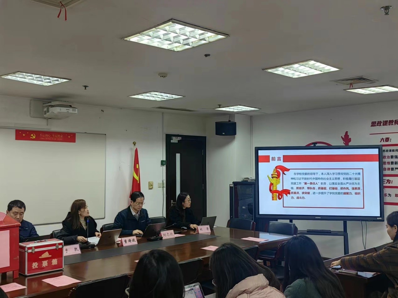 为贯彻落实《关于开展上海工程技术大学2023年度中层领导班子及中层干部考核工作的通知》及《关于开展上海工程技术大学2023年度科(职)级干部选拔任用“一报告两评议”工作的通知》要求,进一步加强领导班子建设和干部工作。12月15日,马克思主义学院在行政楼1112召开2023年度领导班子和领导干部民主测评暨科(职)级干部“一报告两评议”测评会。学院班子成员、全体教职工参加测评会,会议由学院党委书记董旖旎主持。