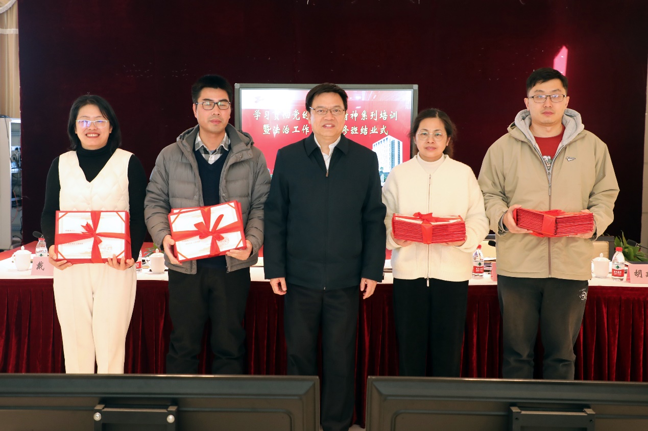 结业仪式上,夏春明副校长为学员代表颁发了结业证书。合规办主任戴彬介绍了法治工作研修班培训开展的情况。教师代表马克思主义学院张毅、法治联络员代表纪委办王永飞作了交流发言。