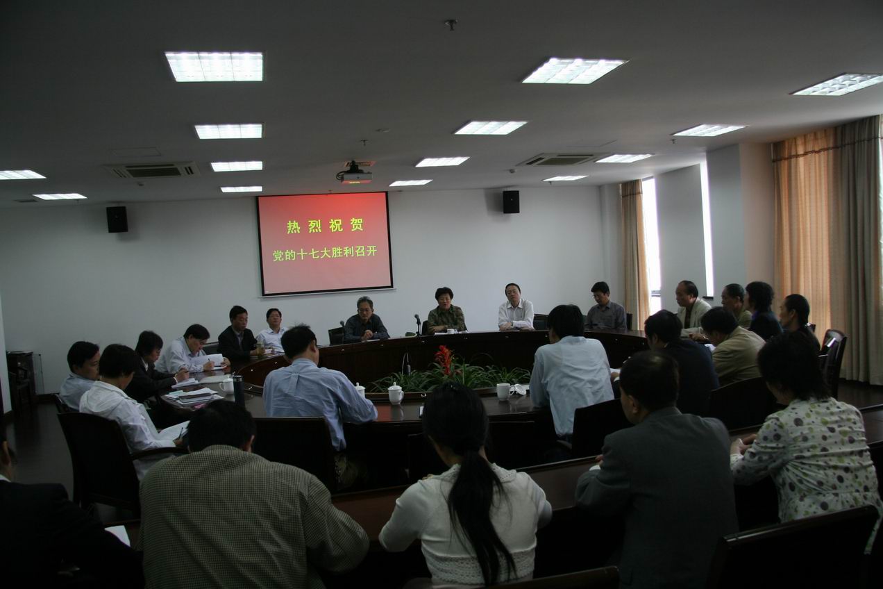 党的十七大胜利召开的喜讯,极大地振奋和鼓舞了全校广大党员干部师生的斗志。在大会开幕前,大家早早地围坐在电视机旁,在大会正式开始之后,都十分认真地收看大会盛况,聆听胡锦涛同志所作的工作报告。党委组织了中心组成员和部分中层干部、民主党派人士、教师代表集中收看和座谈。各学院、各部门也都组织了干部、师生进行收看和座谈。大家一致反映党的十七大是一次继往开来的重要会议,胡锦涛同志的报告高屋建瓴、立意高远、内涵丰富,处处令人振奋,鼓舞人心,是我们党带领人民坚定不移走中国特色社会主义道路的政治宣言,是全国各族人民团结奋斗奔小康的行动纲领。我们一定要认真学习好、领会好、贯彻好报告的精神,以推进学校改革发展的实际行动,为实施科教兴国战略、人才强国战略和中国特色社会主义伟大事业贡献自己的力量。校党政领导在听了胡锦涛同志报告后认为,报告主题鲜明,深刻地阐述了中国特色社会主义是前进的旗帜、胜利的道路,是马克思主义中国化的理论体系,改革开放二十九年的伟大实践雄辩地证明了这条道路越走越宽广。我们一定要在思想上、理论上、行动上坚定这个信念,教育和引导青年大学生,使这面旗帜一代一代传下去。大家认为,报告总结过去五年取得的成就,令人鼓舞和振奋,同时,对存在的主要问题实事求是,对今后的工作任务总揽全局,指导性强,报告提出的十二个方面的任务是我们工作和行动的指南。我们相信在党中央坚强的正确的领导下,在全面建设小康社会的康庄大道上一定会取得更加辉煌的成就。校领导在座谈中认为,报告把教育事业放到优先发展的地位,提出了要以育人为本、德育为先,实施素质教育的要求,我们一定要深刻领会,积极贯彻,要坚持科学发展,加强内涵建设,深化教学改革,提高教学质量,把学生培养成为中国特色社会主义事业合格建设者和可靠接班人,办好让党放心、让人民满意的高等教育。广大党员、干部、教师认为胡锦涛同志的报告处处打动人心,从大会中的三十二次掌声中就说明了报告符合人民的意愿、说出了我们的心声。改革开放二十九年来,在党的领导下,我国国力日益强盛,人民生活水平得到了明显的提高,国际地位不断地增强,大大地激发了我们的民族自豪感和自信心。我们相信,不管世界风云变幻、前进道路上的困难险阻,只要我们永远跟党走,坚定不移地走中国特色社会主义道路,中华民族的崛起和复兴指日可待。许多教师、干部、民主党派人士指出,报告花了很大篇幅阐述了民生问题和社会建设,既有原则方针,又有具体的目标措施,使人听了十分亲切和贴切,充分体现了党执政为民的宗旨和发展为了人民、发展依靠人民、发展的成果让人民共享的理念,使得老百姓和党心连心。许多同志还指出,报告中有许多新的观点、新的提法,体现了我们党与时俱进的时代品格,我们要认真地学习领会。