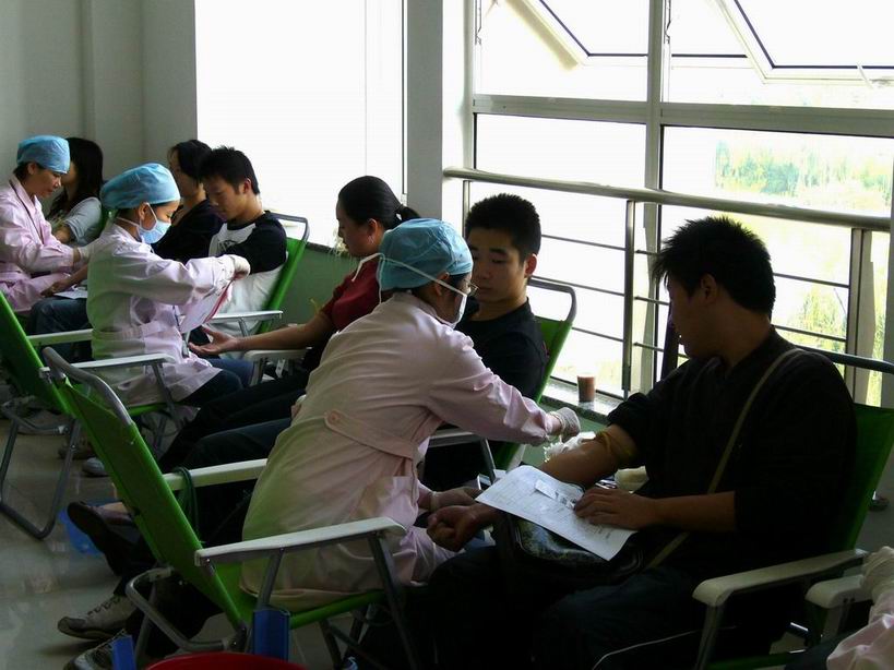 2007年10月19日上午,今年第二次献血活动在校师生活动中心进行,参加献血的学院有航空运输学院、电子电气工程学院、管理学院、汽车工程学院和材料工程学院等学院的同学们,还有机关、部门与学院的教职员工,共有564名人员在现场进行了无偿献血。 在现场,献血者们挽起他们的衣袖,献出了他们的热血,献出了他们的爱心。殷红的鲜血顺着导管流进了储血袋,他们脸上散发出灿烂的微笑。他们的高尚行为展示了我校新时代大学生和教师的风范。工程大为有这样的同学和教师而感到骄傲。 校领导郝建平副校长亲临现场慰问献血的同学和老师们,亲切地询问了献血者的身体情况,并对他们的勇敢、奉献的献血行动表示了由衷的感谢。各学院从总支书记到辅导员、校工会领导等,都亲临现场给同学以鼓励和关爱。校团委组织志愿者在现场为献血者服务,校资产处组织力量与人员为献血者们递上了一份份热腾腾的八宝粥与点心,辅导员老师拍摄下了每一位同学献血时的镜头,使他们个个获赠了一张极具纪念意义的照片。 此次献血,充分展示了我校师生关心社会,关心他人和无私奉献的社会新风尚和团队精神,通过无偿献血活动进一步提升了我校大学生们的社会责任感。校献血办为他们在构建社会主义和谐社会贡献了自己的一份力量而感到自豪。 校献血办 张芳华 |