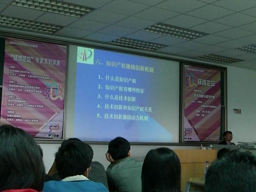 |  10月23日下午13:30,根据上海市教委的统一安排,研究生处组织我校研究生赴东华大学听取了上海市西南片高校研究生学术系列报告之“学术创新与知识产权”学术报告会。本次报告会由上海市知识产权服务中心高级工程师、高级顾问许章林主讲。研究生处副处长王鹏英老师、王成涛老师、孙勇老师与广大研究生一起聆听了本次学术报告会。 知识产权广义上是指公民法人和社会组织在科学技术和文学艺术等方面脑力劳动创造的智力成果;狭义上指专利权、著作权、商标权等。许章林工程师首先介绍了当前国际贸易中知识产权纠纷的多种形式,并且用生动的案例说明知识产权是企业生产与国际竞争的有力武器。当前社会是知识经济、知识产权的社会,一个国家的知识产权拥有量是衡量这个国家技术创新能力和市场竞争力的重要标志;知识产权是推动科技进步和经济发展的火车头。许章林工程师还就知识产权是知识经济社会的生产要求,激励创新机制,优化创新资源,保护创新成果等方面作了介绍。最后,他呼吁大家提高产权意识,注重知识产权保护。 学生信息员:张强 |