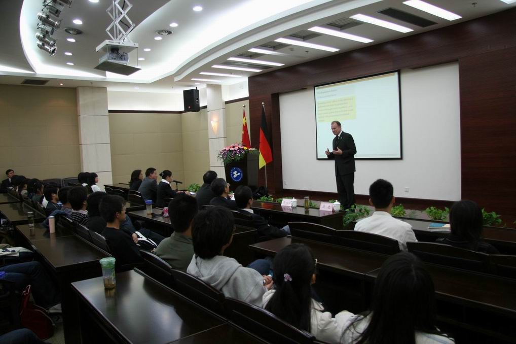|  应国际交流处和管理学院的邀请,德国基尔理工大学管理与营销系主任、波罗的海大学公共关系部长Bernd Waldeck教授于10月29日下午在松江校区第三报告厅,为管理学院的师生作了战略管理与战略营销的学术讲座。Bernd Waldeck教授通过定性与定量的方法剖析了经验曲线及BCG投资组合矩阵的深层内涵,以及利用这些方法在实践中解决企业的应用,内容涉及了经济学、统计学、战略管理、市场营销、管理学等学科的相关知识。Bernd Waldeck教授将严谨的讲学内容与轻松活跃的互动教学方法结合在一起,深入浅出的讲学受到了广大师生的一致好评。最后,Waldeck教授向大家介绍了德国波罗的海大学的校园与专业设置情况,希望能加强两校间的合作与交流。 秦迎林 | | | 稿件作者:秦迎林 责任编辑:陈文琼
