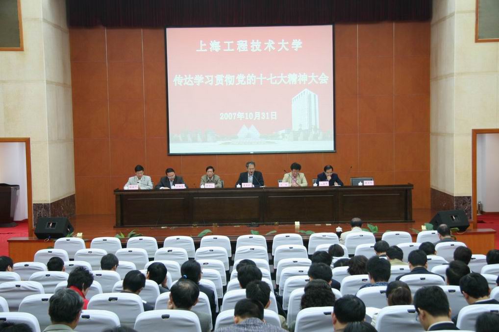 |  10月31日上午,党委在B301会议室召开传达学习党的十七大精神大会,党委书记曹伟武、校长汪泓、党委副书记田信灿、副校长郝建平、孙培雷、程维明和全校中层干部、社科部教师、学生辅导员参加了大会。会上,党委书记曹伟武传达了党的十七大精神和市委对学习贯彻十七大精神的要求。学校党委即日发出了《关于学习宣传党的十七大精神的通知》,要求全校党员、干部和师生员工把学习贯彻十七大精神作为学校当前和今后一个时期的首要政治任务,认真学习、深刻领会、全面贯彻,迅速兴起学习贯彻党的十七大精神的热潮,《通知》要求在学习中坚持理论联系实际,学以致用,指导实践,推动工作,在中国特色社会主义理论指导下,贯彻落实科学发展观,推动学校各项工作又好又快发展。 |